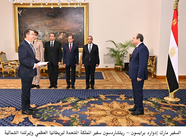 وصرّح المتحدث الرسمي باسم رئاسة الجمهورية بأن الرئيس أعرب عن ترحيبه بالسفراء الجدد المعتمدين لدى جمهورية مصر العربية، مؤكدًا اعتزاز مصر بعلاقاتها المتميزة مع دولهم، وحرصها الراسخ على تعزيز أواصر التعاون الثنائي في شتى المجالات. كما أعرب سيادته عن خالص تمنياته لهم بالتوفيق والنجاح في أداء مهامهم الدبلوماسية بالقاهرة، مؤكداً التزام الدولة المصرية بتقديم كافة سبل الدعم والمساندة اللازمة، بما يسهم في تعميق أواصر التقارب والتعاون والتنسيق المنشود بين الجانبين.