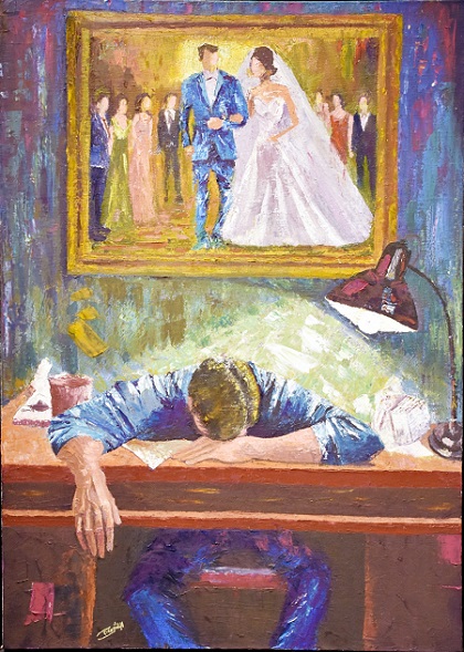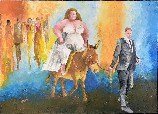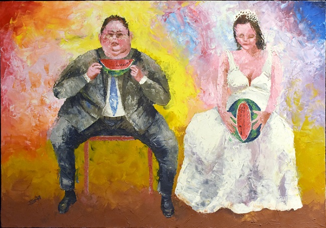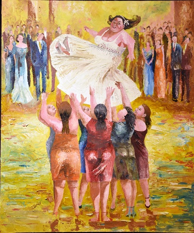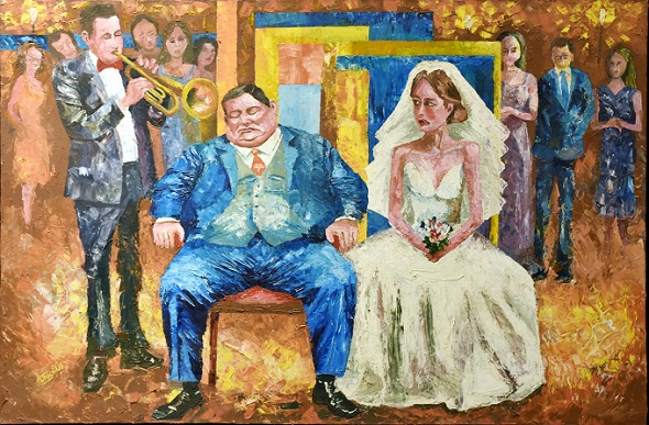 اختيار الفنان لموضوع الفرح هو لأن (الفرح) نموذج مصغر للمجتمع فى أي مكان ومرآة صادقة تعكس المتناقضات المجتمعية شكلا مضمونا وإيضاح الجانب النفسي والمعنوى، فالفرح من حيث الشكل هو موسيقى ورقص وزهور وشموع وطعام.. إلا أن هذه المظاهر تخفي وراءها مشاعر الخوف والقلق والرهبة مما هو قادم، ابتداء من أول يوم لارتباط العروسين داخل غرفة نومهم أو خارجها فى محيط الأسره مثلا، أو كل ما سيواجهونه من مشاكل فيما بعد، سواء كانت مشاكل أسرية أو مشاكل عامه اقتصاديه وغيرها كالفقر وضغوط الحياة.