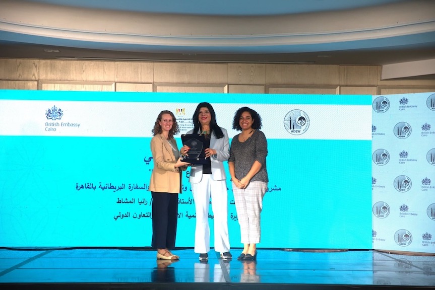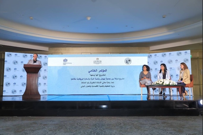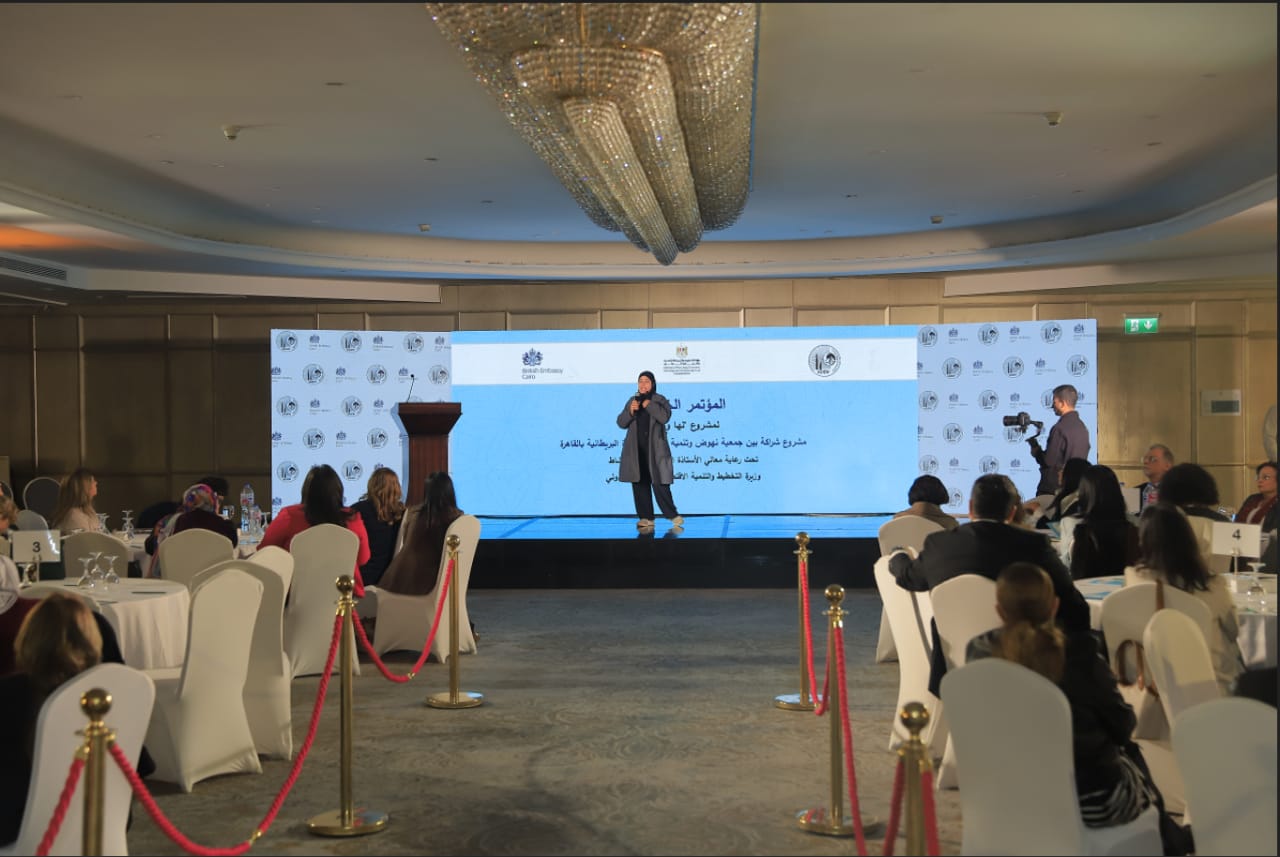 وفي ختام المؤتمر، قدمت د. إيمان بيبرس درع جمعية نهوض وتنمية المرأة إلى السفارة البريطانية بالقاهرة، تقديرًا لشراكتها الفاعلة في مشروع "لها ومعها".