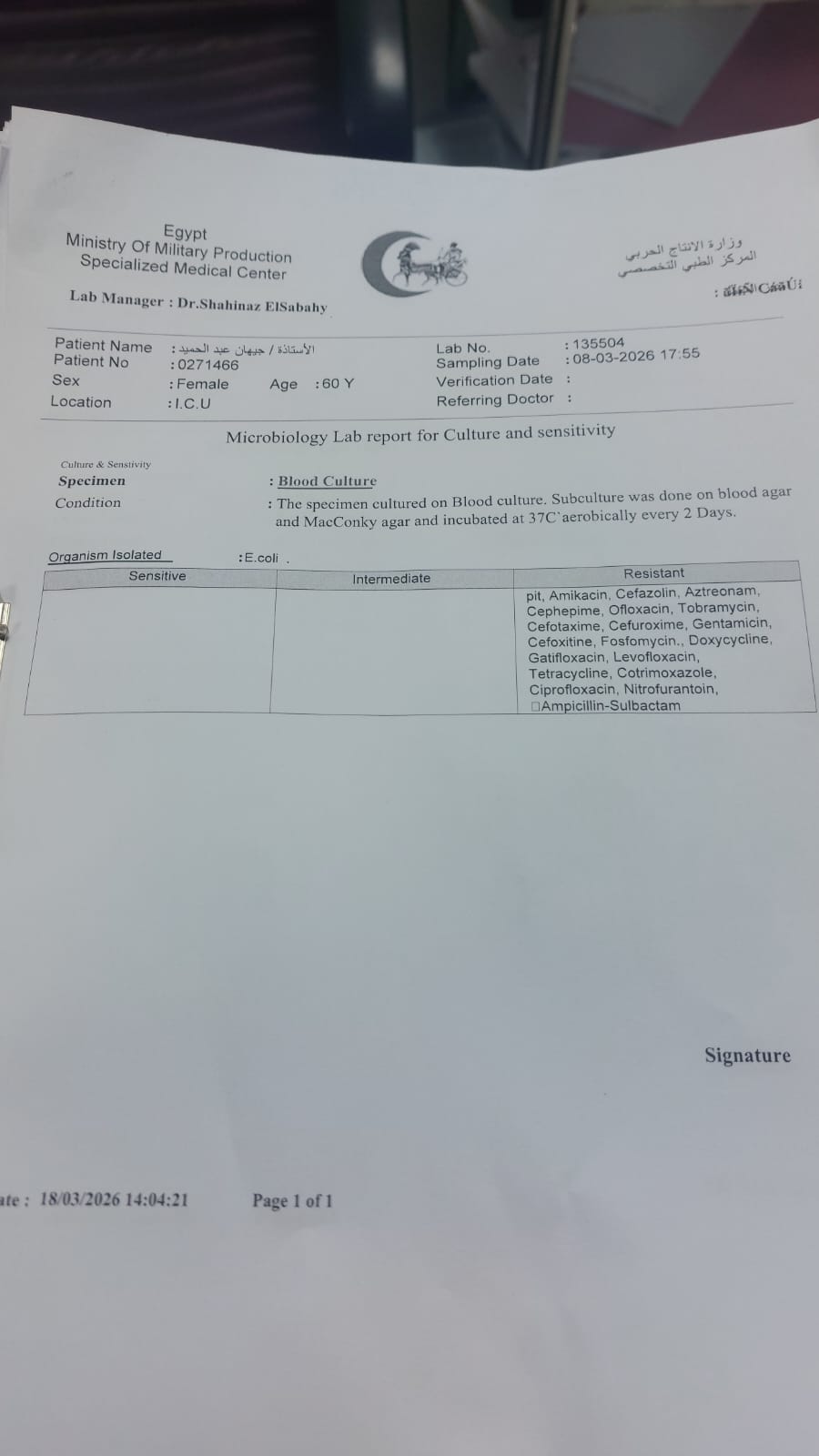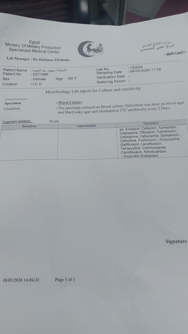 التحاليل الطبية.. وفقا للأسرة، أثبتت أن البكتيريا المسببة للعدوى كانت من الأنواع المقاومة لعدد كبير من المضادات الحيوية ما اضطر الأطباء لاستخدام أدوية قوية للغاية... إلا أن هذه الادوية رغم ضرورتها تسببت في مضاعفات خطيرة أثرت على أجهزة الجسم المختلفة وزادت من تعقيد الحالة الصحية...