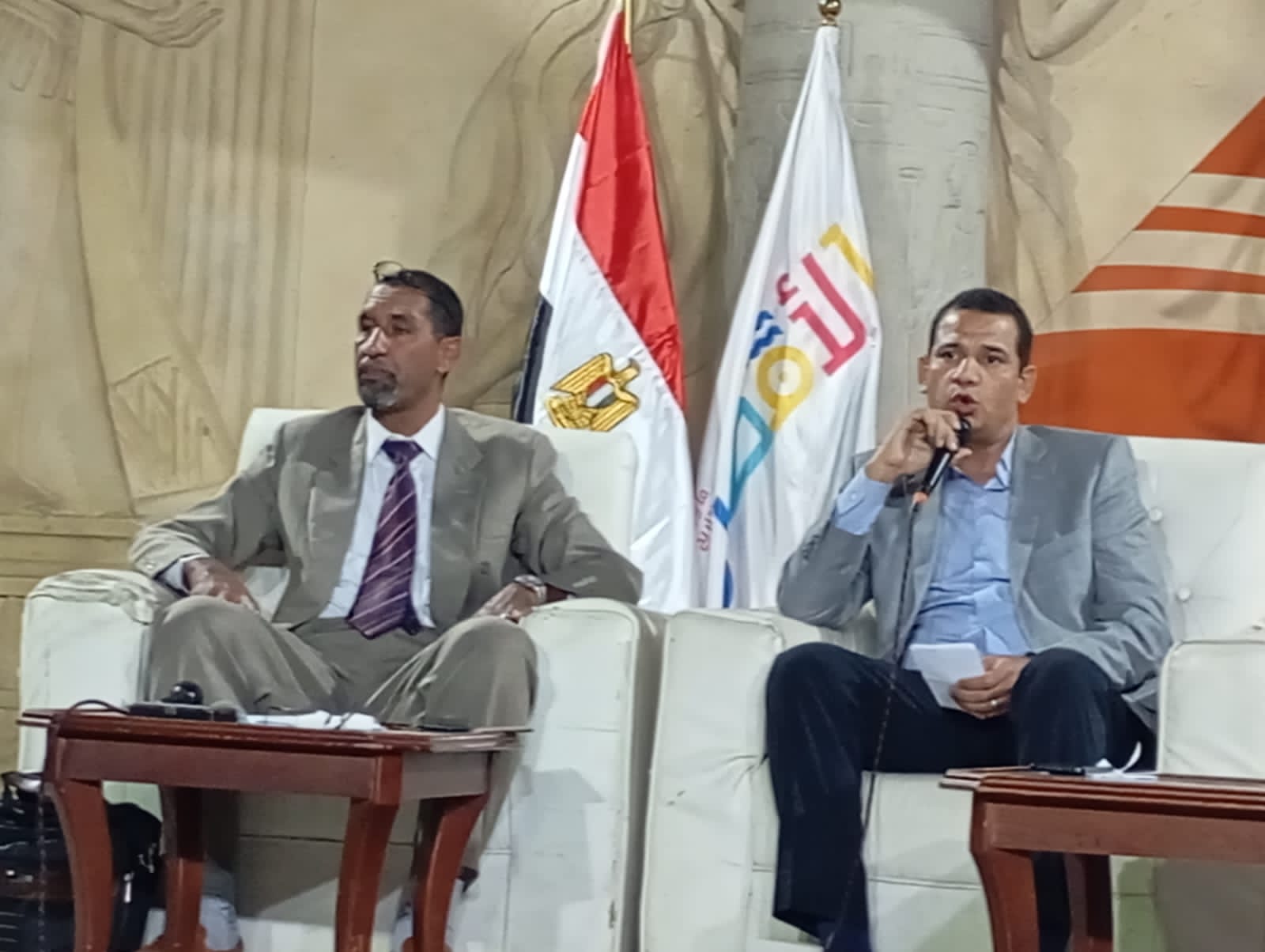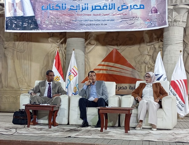 ومن جانبه، تحدّث الدكتور صلاح أبو الوفا العادلي، رئيس قسم اللغة العربية السابق ووكيل كلية الآداب بقنا، مرحبًا بمعرض الأقصر الرابع للكتاب كمنبر للثقافة المصرية الأصيلة. وبدأ مداخلته بالتأكيد على أن أنسنة المكان في القصة والرواية تعني تحويله من مجرد خلفية جامدة إلى عنصر حي وفاعل له هوية ودور إنساني. فالمكان في رؤية الأدباء ليس مساحة جغرافية فقط، بل كائن يشارك في صناعة الحدث، ويتفاعل نفسيًا وعاطفيًا مع الشخصيات، حتى يصبح شريكًا في السرد لا مجرد ديكور.