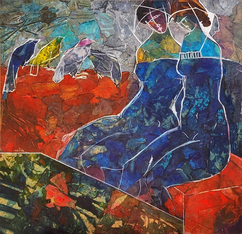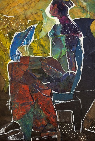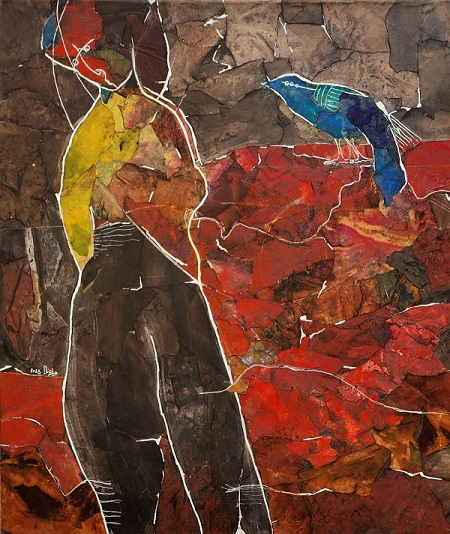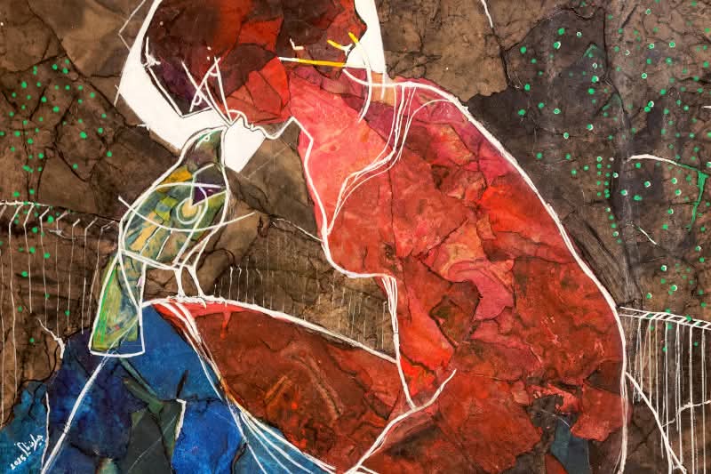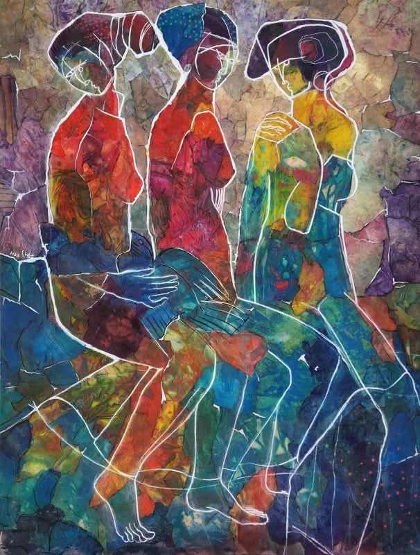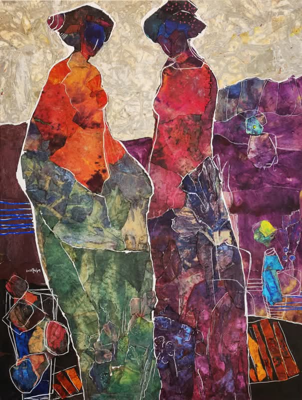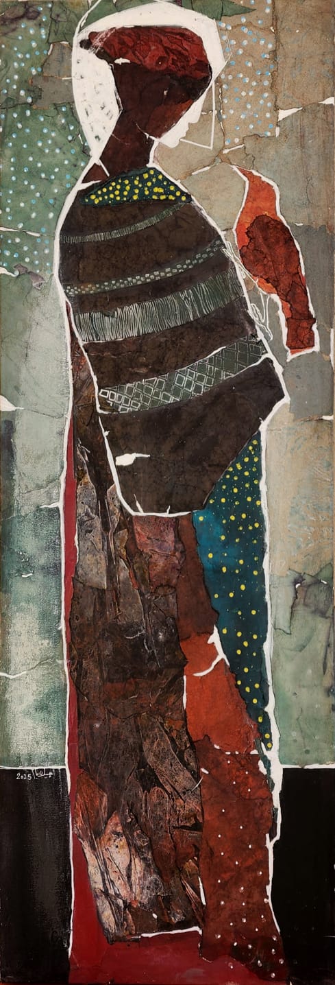 اللغة التشكيلية عندها ليست عبثية؛ كل ملمس خشن وكل طبقة لونية "أرضية" هي محاولة للالتصاق بالتراب والمنشأ. هذا البحث "الكهنوتي" يتجلى في صبرها على بناء اللوحة طبقة فوق طبقة، تماماً كما تُبنى الأساطير أو تكتب المخطوطات القديمة، مما يمنح أعمالها ثقلا تاريخياً ووجودياً.