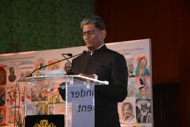 واختتم السفير كلمته بتوجيه الشكر للحضور، مؤكدًا أن هذا الاحتفال يجسد مسيرة الهند القائمة على النمو المستدام والتنمية الشاملة والتحول الأخضر، مختتمًا بالقول: تحيا الهند.