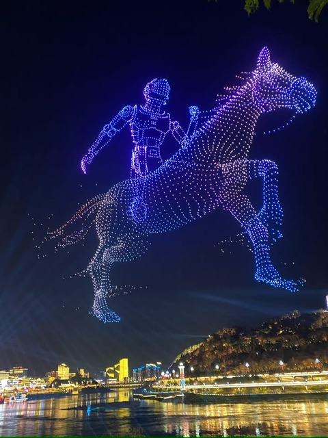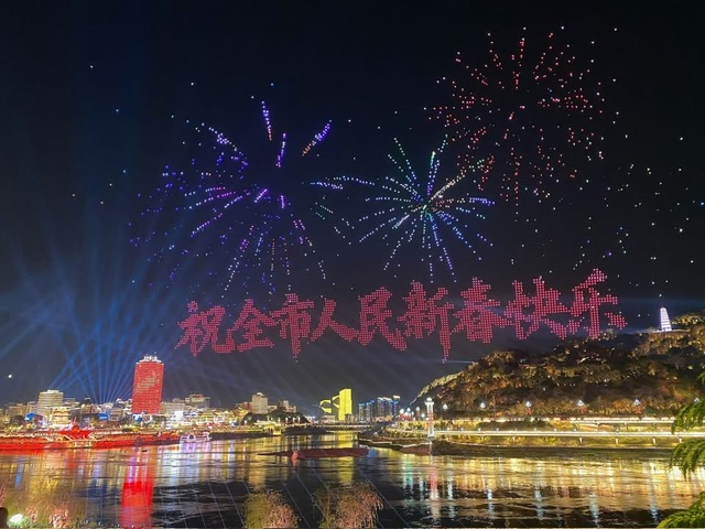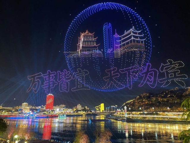 استضافت مدينة ييبين بمقاطعة سيتشوان في 11 فبراير 2026 عرضاً ضوئياً ضخماً بطائرات مسيرة تحت شعار "أول مدينة على نهر اليانغتسي، الخيول الجامحة" احتفالاً بعيد الربيع.
