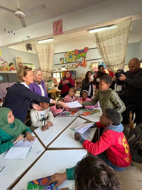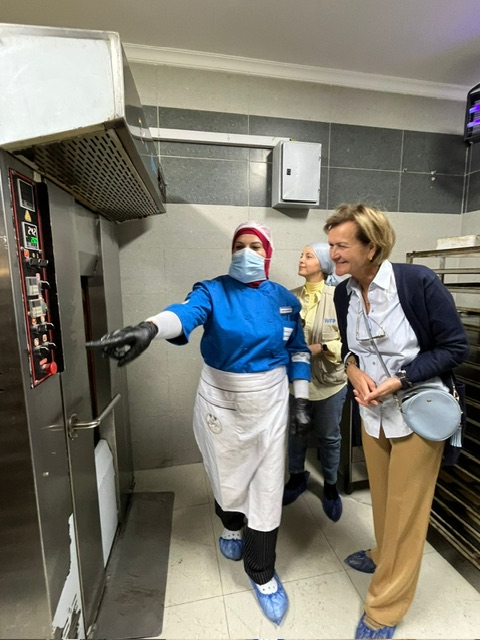 كما قامت السفيرة إيخهورست بزيارة إلى المطبخ المركزي لتغذية المدارس في بني سويف، والذي يوفّر وجبات طازجة ومغذية يوميًا لنحو 1600 طالب في 47 مدرسة مجتمعية بمنطقة بني سليمان، وذلك بفضل جهود برنامج الأغذية العالمي، و**مؤسسة الكرمة للتنمية، ووزارة التربية والتعليم والتعليم الفني.