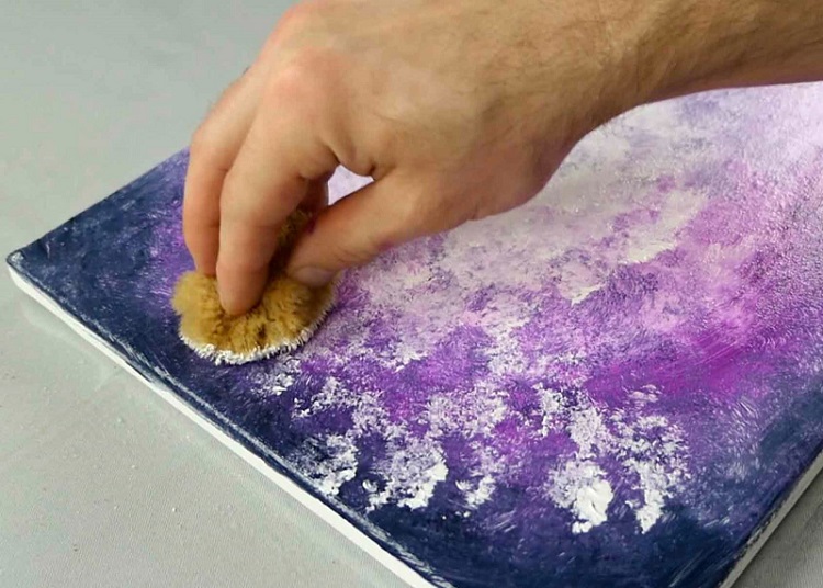 تقنية "السبونج" التى تعتمد على إسفنجة طبيعية أو صناعية. حيث يتم غمس الإسفنجة في اللون و"الطبطبة" بها على اللوحة لتعطي تأثيرا مساميا متقطرا للحصول على مظهر ضبابي أو "مبقع" بنعومة، وهي تقنية شهيرة جدا وبسيطة، يستخدمها النقاش المبتدئ.