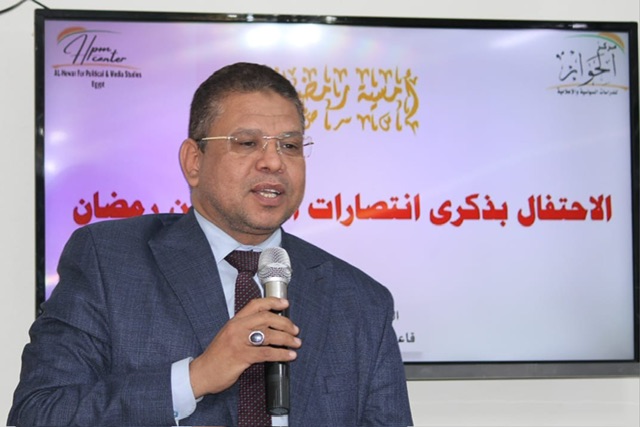 عقد مركز الحوار للدراسات السياسية والإعلامية أمسية رمضانية بمناسبة الاحتفال بذكرى انتصارات العاشر من رمضان، وافتتحت الأمسية بكلمة من اللواء أ.ح حمدي لبيب -رئيس مؤسسة الحوار للدراسات والبحوث الإنسانية- والتي قدم فيها سردًا لمراحل الحرب المختلفة مع العدو بدءً من مرحلة الصمود ووصولًا إلى مرحلة الحرب وبناء السلام، مؤكدًا على قوة المعارك التي خاضها الجيش المصري ضد العدو الإسرائيلي لاستعادة الأراضي المصرية.