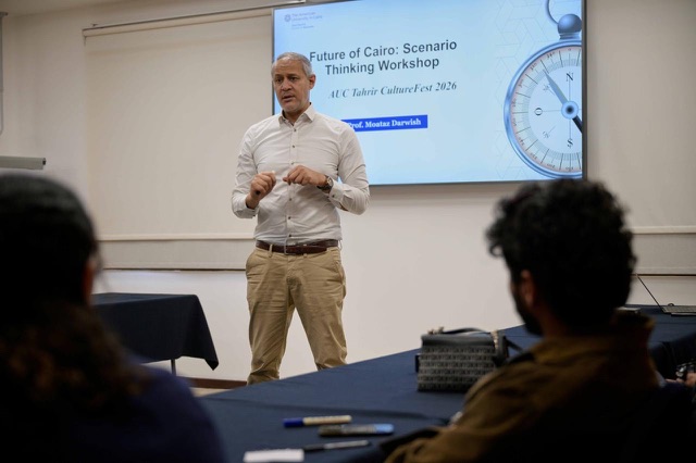 كما قاد الدكتور معتز درويش، أستاذ الممارسة المشارك في قسم هيكل للإدارة بالجامعة الأمريكية بالقاهرة وخريج الجامعة عام 1995، ورشة عمل تفاعلية بعنوان "التفكير بالسيناريوهات: مستقبل القاهرة"، دعى من خلالها المشاركين لتخيل تصورات متعددة لمستقبل المدينة.