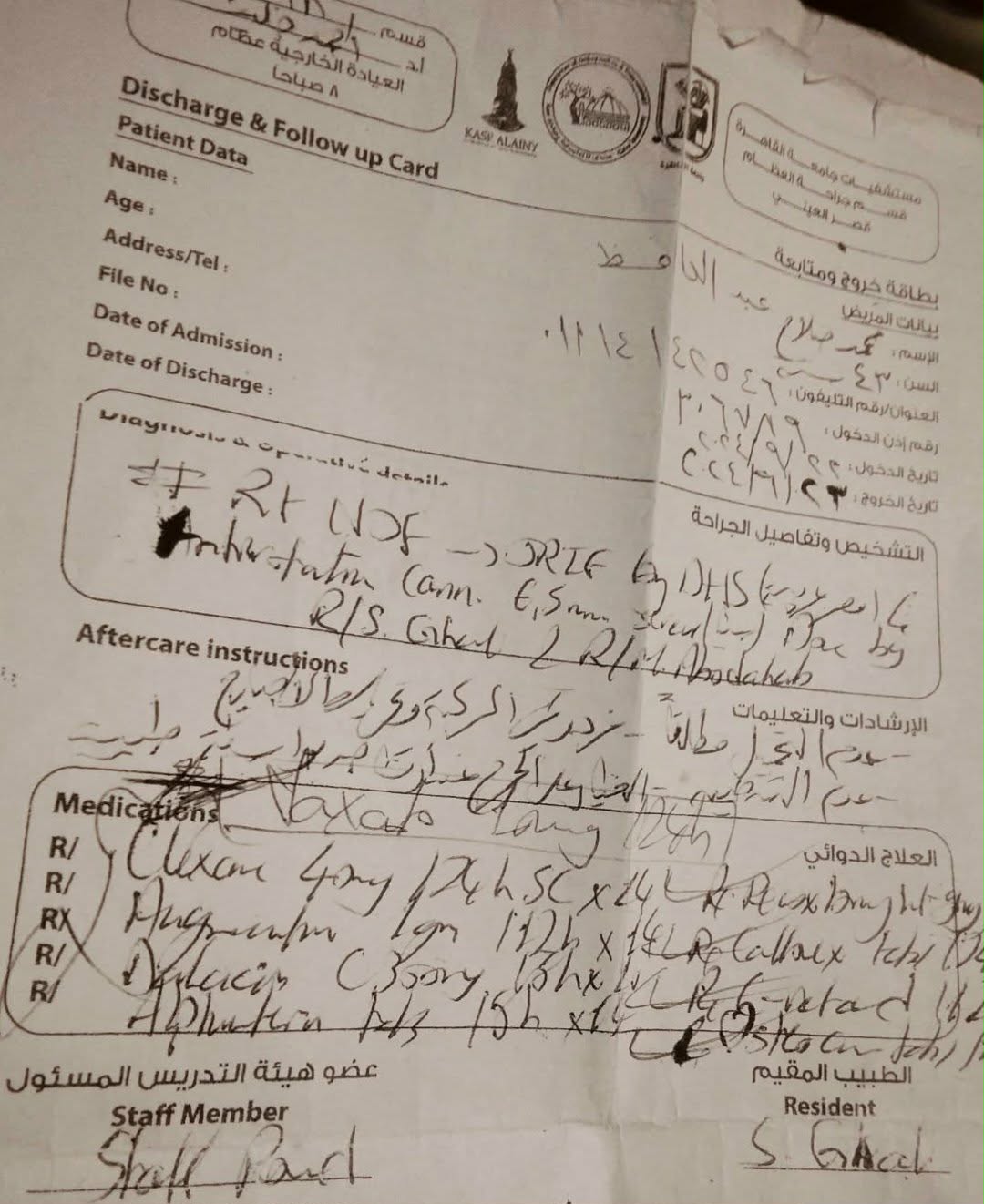 في 24 يونيو 2024، خضع الشاب لعملية جراحية داخل مستشفى قصر العيني، تم خلالها تركيب شرائح ومسامير لإنقاذ قدمه لكن ما حدث بعد ذلك لم يكن شفاءً، بل نزيفًا مستمرًا لم يتوقف حتى الآن.
